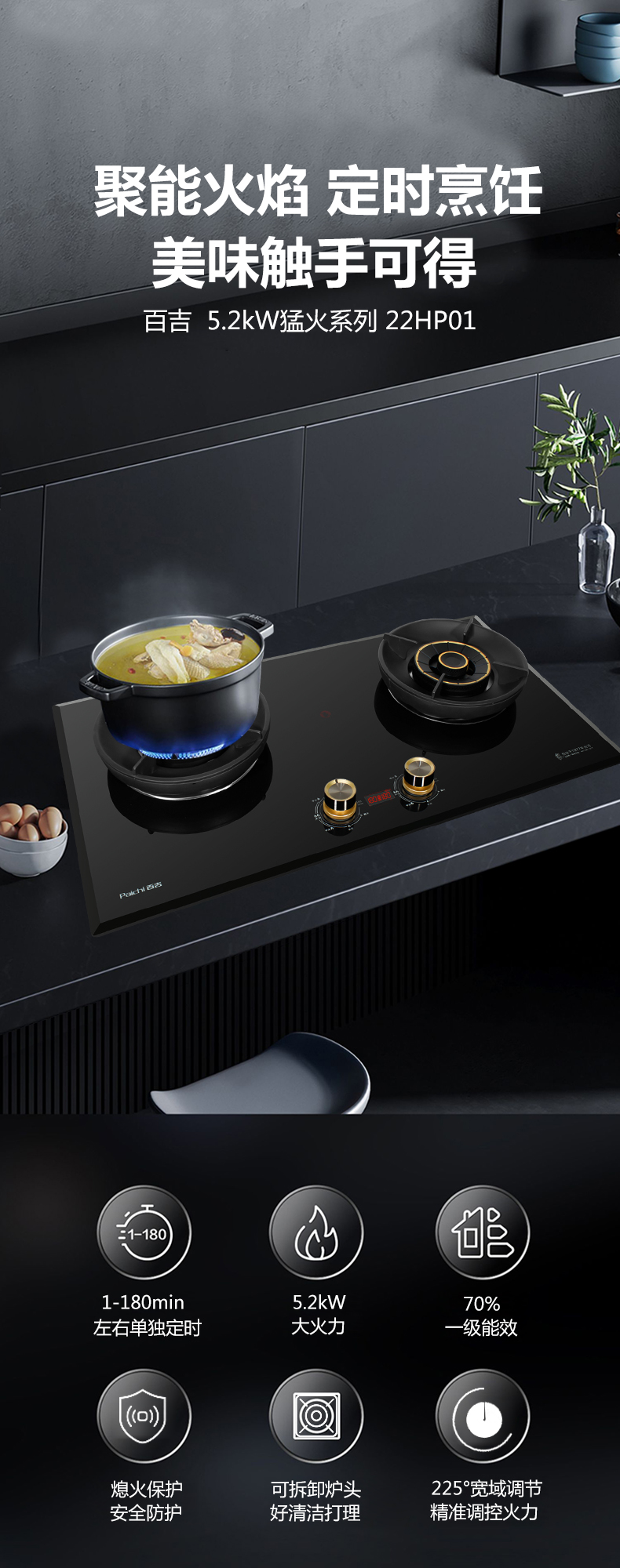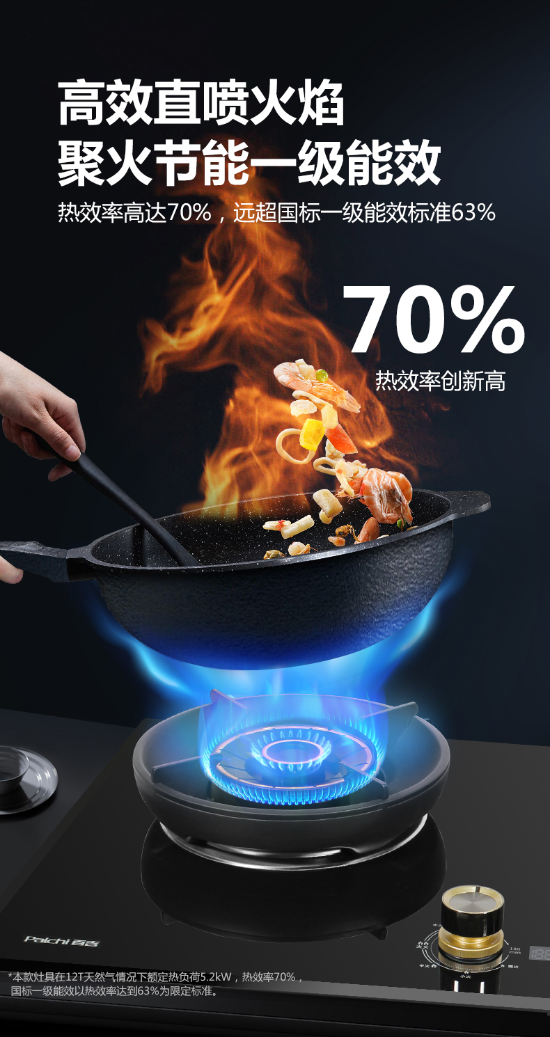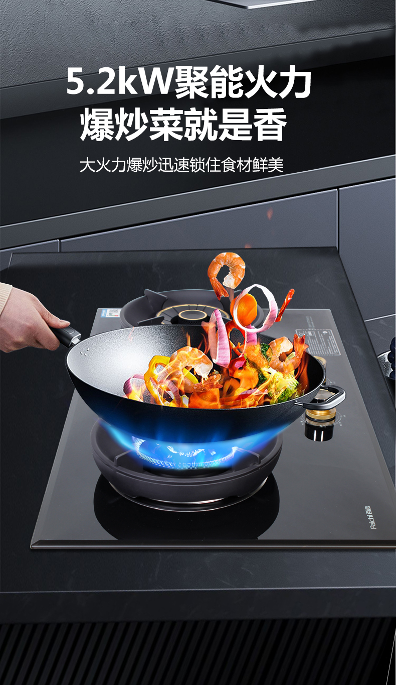 5.2kW聚能火焰,70%熱效率,180分鐘 定時烹飪
