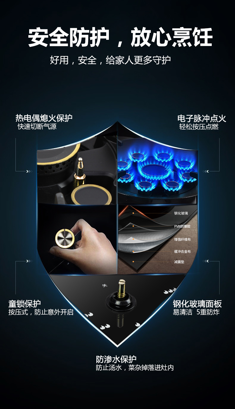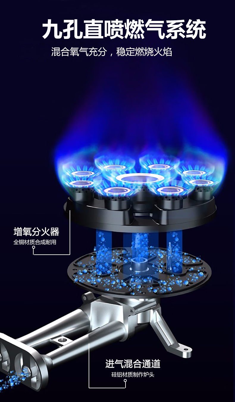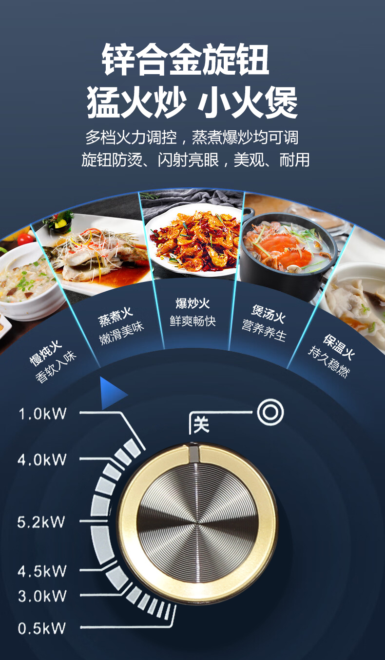 5.2kW聚能猛火灶,63%熱效率一級能效,帶熄火保護(hù)裝置