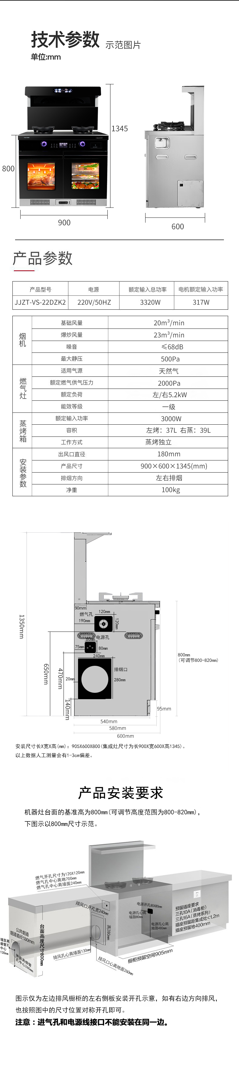900寬集成灶5.2kW蒸烤箱一體