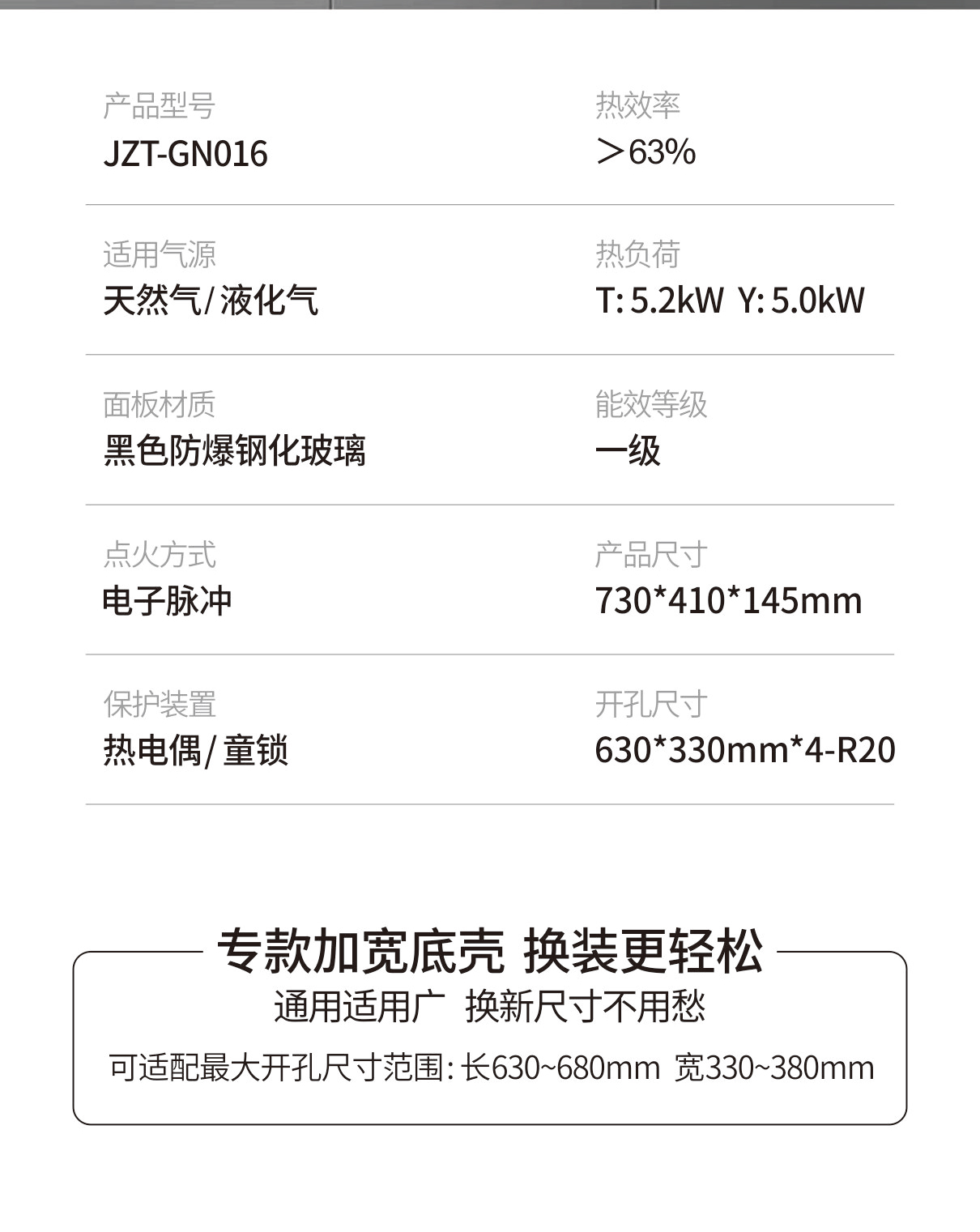 5.2kW大火力,一級能效,帶熱電偶熄火保護